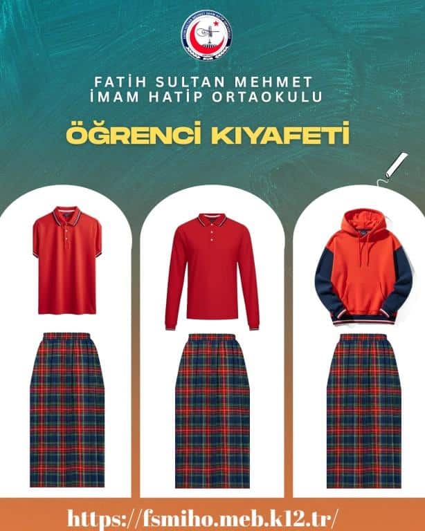 Okulumuzda eğitim öğretime devam eden tüm öğrencilerimizin görselde yer alan okul kıyafetini giymeleri gerekmektedir.